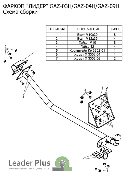 Фаркоп Лидер-Плюс для ГАЗ Газель (2752) 1999-2006. Фланцевое крепление. Артикул GAZ-04H
